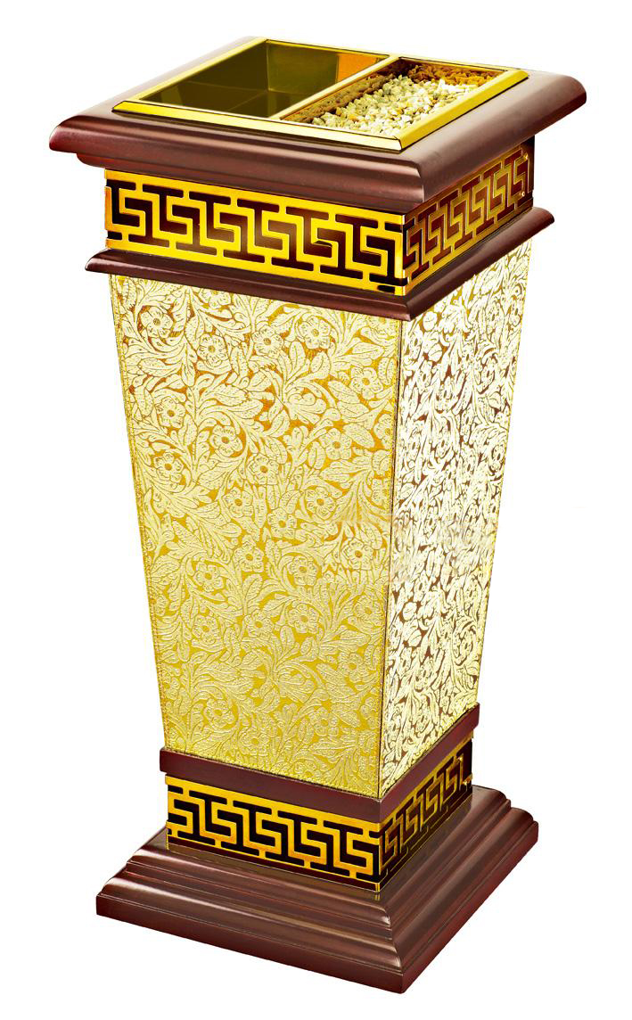 詳情咨詢:4008-787-781,烤漆金卷葉煙灰垃圾桶,采用冷軋板烤漆制作,工藝精良,適用于作為賓館垃圾桶和室內(nèi)垃圾桶使用。